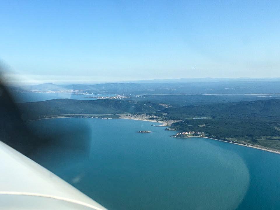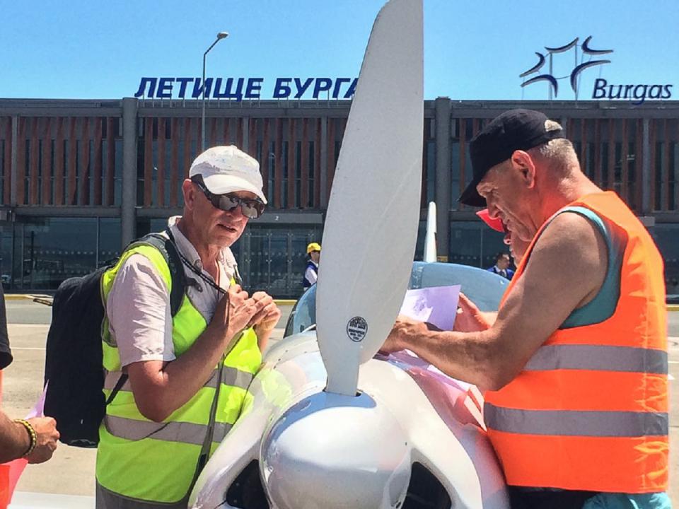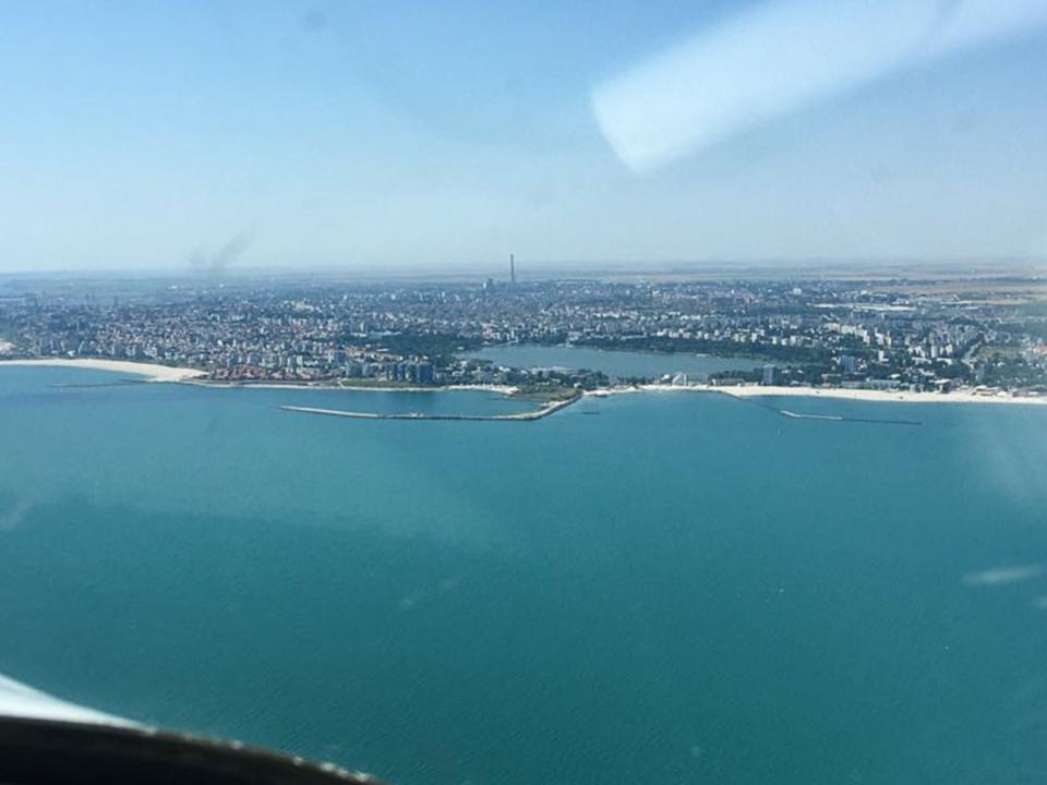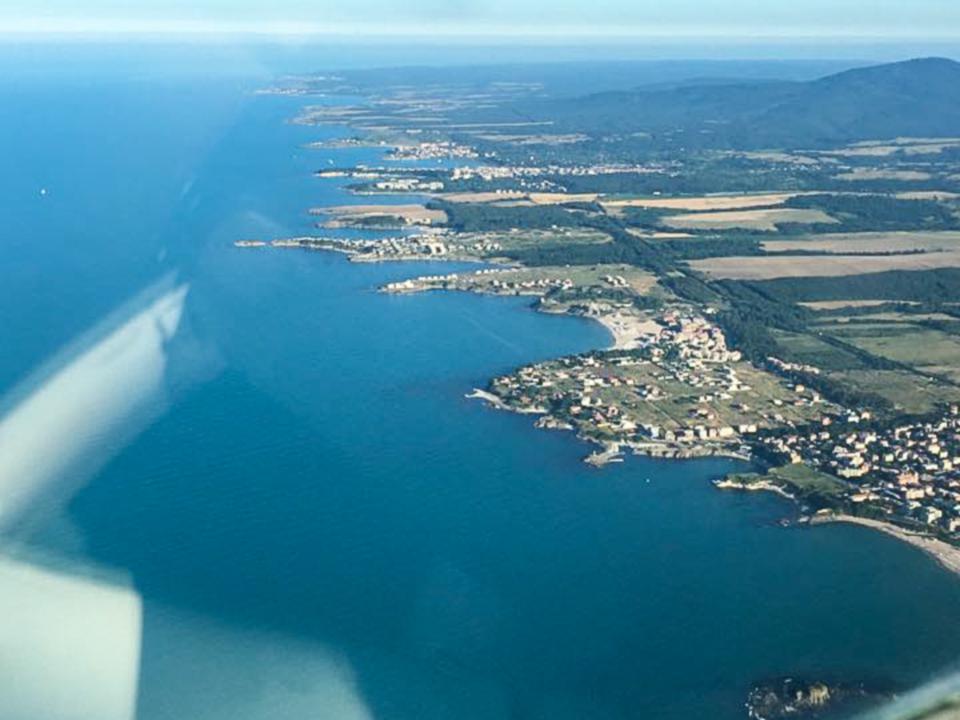 Das Mini-Leg nach Constanta versüßen wir uns noch mit einem ganz kurzen Küstenflug, um dann in Constanta auf der großen Piste zu landen. Follow Me und Winkermännchen - mit einem großen Bus für Passagiere werden wir vom Vorfeld gebracht. Mühsame Bürokratie, Zoll, Papier und Zettel und nun leider ersten Handling-Kosten lassen uns die Laune nicht verderben. Nach einer Stunde sind wir wieder in der Luft nach Burgas – Bulgarien.