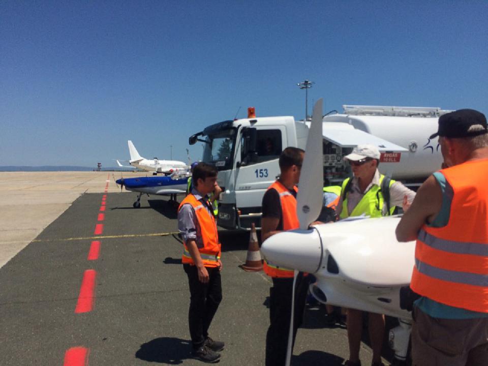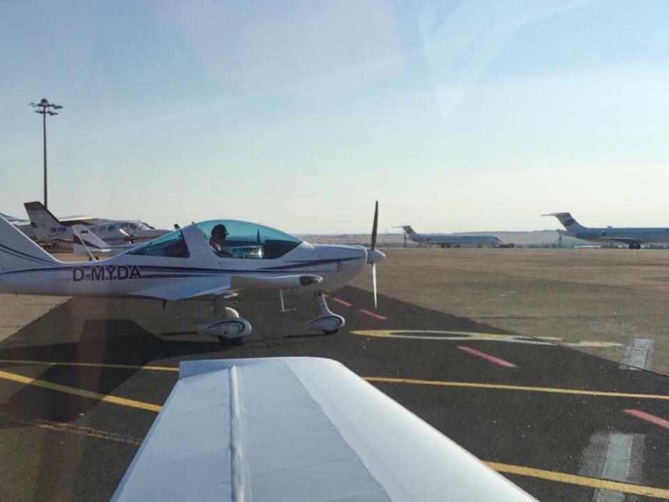 Unten angekommen empfängt uns Follow Me und Winkermännchen und gnadenlose Hitze auf dem betonierten Vorfeld. Jede Menge Traffic – viel los – und trotzdem bekommen wir sofort Sprit.