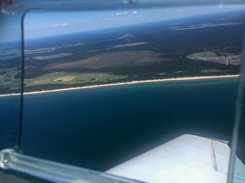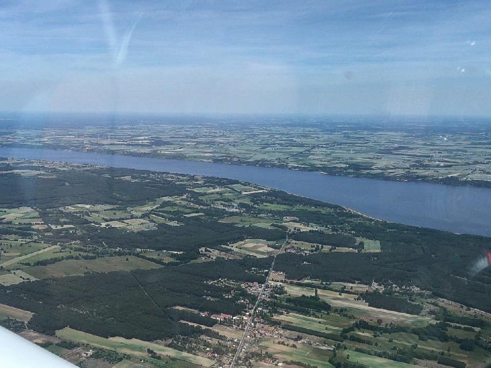 Später dann - Kurs Süd-West über Wasser und der Kurs verkommt zur Schlangenlinie, da das Militär tatsächlich trotz großer Hitze und Geldmangel einen Jäger aus dem Hangar gerollt hat.