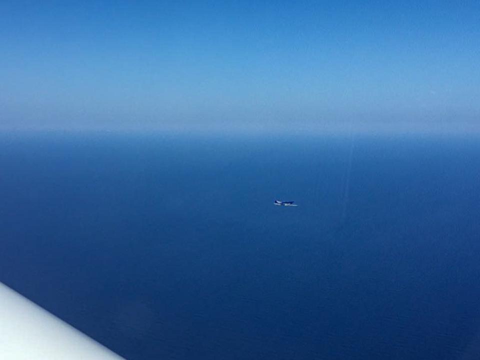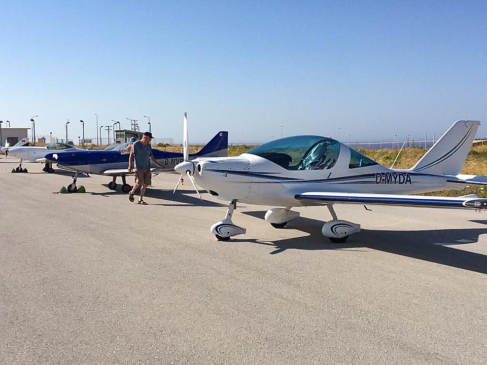 Taxi zum Platz. Und tatsächlich findet sich sogar auf dieser winzigen Insel eine Handling-Agency, welche fürs Nichtstun Geld bekommt. Das Ganze ist grotesk: während Ernst und Thomas bereits auf dem Vorfeld an der MF schrauben, werden Hartmut und ich auf dem Tower vom Handling erwischt – Dokumente, Personen- und Gepäckkontrolle – das volle Programm mit der unvermeidlichen Rechnung. Kurz vor dem Abflug rollt die Feuerwehr sage und schreibe 35 m übers Vorfeld, um uns mitzuteilen, dass Sitia geschlossen hat. „Fake-News“? oder nicht - wir starten einschließlich Tiefanflug über das Segelboot von gestern. Steigen, gerade ausfliegen, jede Idee ist nötig, um den hohen Triebwerkstemperaturen zu entkommen. Dabei verliert sich die Formation, um sich 15 Minuten später wieder zusammen zu finden. Eine reichliche Stunde übers Meer, dann endlich Land in Sicht. Ein extralanges Finale auf Sitia ermöglicht den Anflug auf einen wie einen Flugzeugträger liegenden Platz im Osten Kretas.