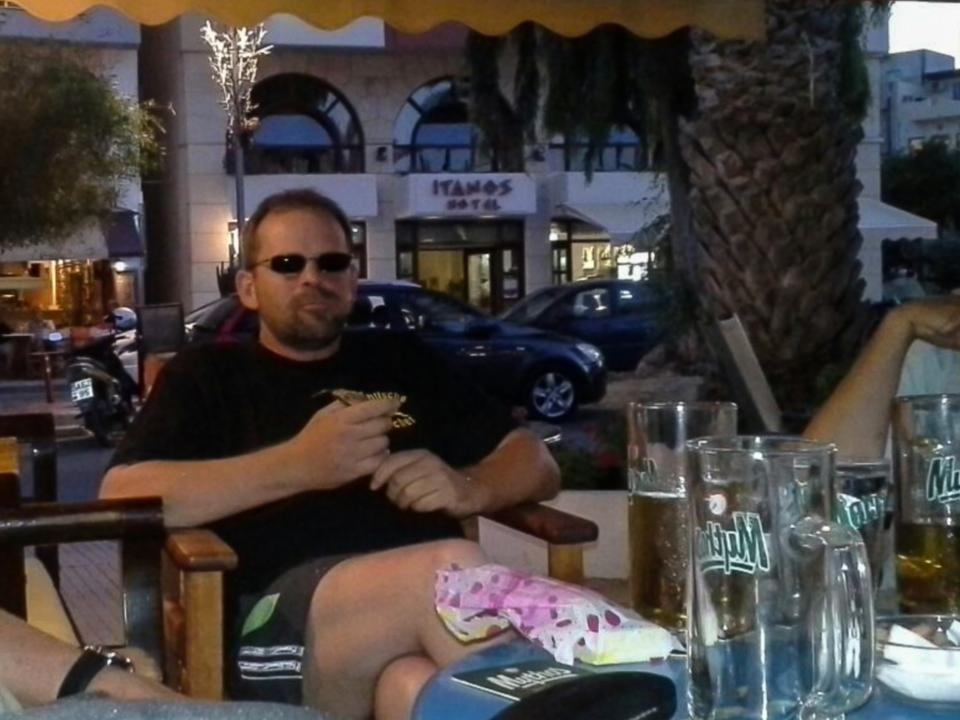 Yianni holt uns mit seinem Taxi ab. Hotel mit Klimaanlage. Bier in der Taverne direkt am Meer, URLAUB.