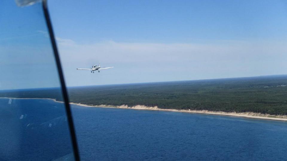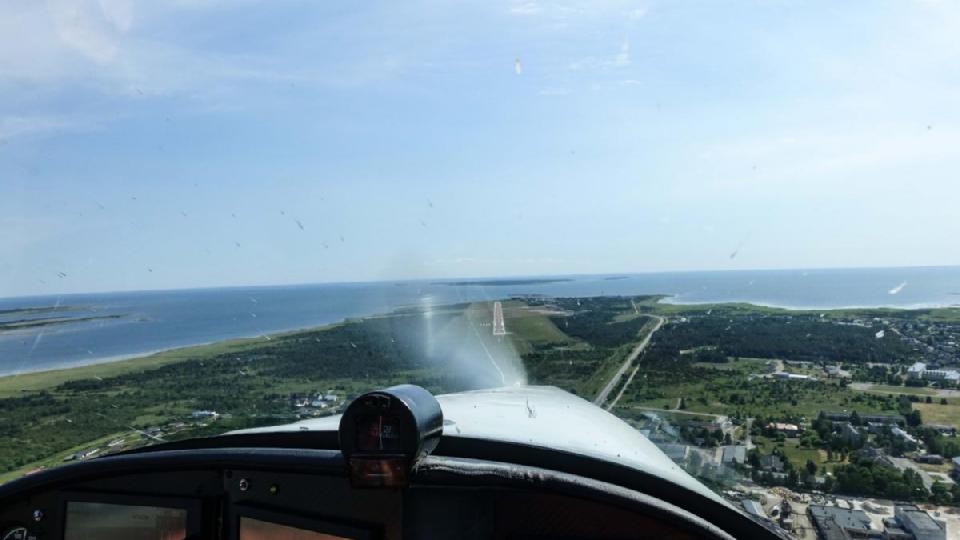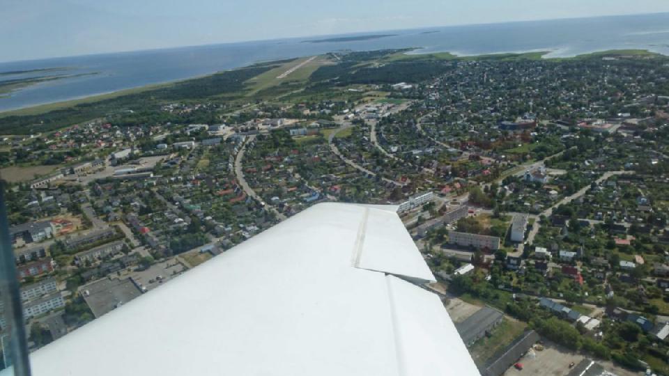 Kaunas Tower schickt uns südlich vom Fluss auf Kurs, mit 315 Grad geht’s Richtung Ostsee, zunächst in thermisch aufgeheizter Luft in 2000ft, später 4000ft höher in angenehmer Ruhe. Klaipėda (Memel) passieren wir nördlich, immerhin war das mal die nördlichste Stadt Deutschlands. Endlich links die Ostsee, Coastline, die strenge Formation zerfällt, die Spielereien in der Luft haben begonnen. Lettische Grenze passiert, gar nicht so viel später Einflug in den estnischen Luftraum. Wir verlassen die Küstenlinie und fliegen die Insel Saaremaa (Ösel) direkt an, kurz darauf Landung in Kuressaare (Arensburg).