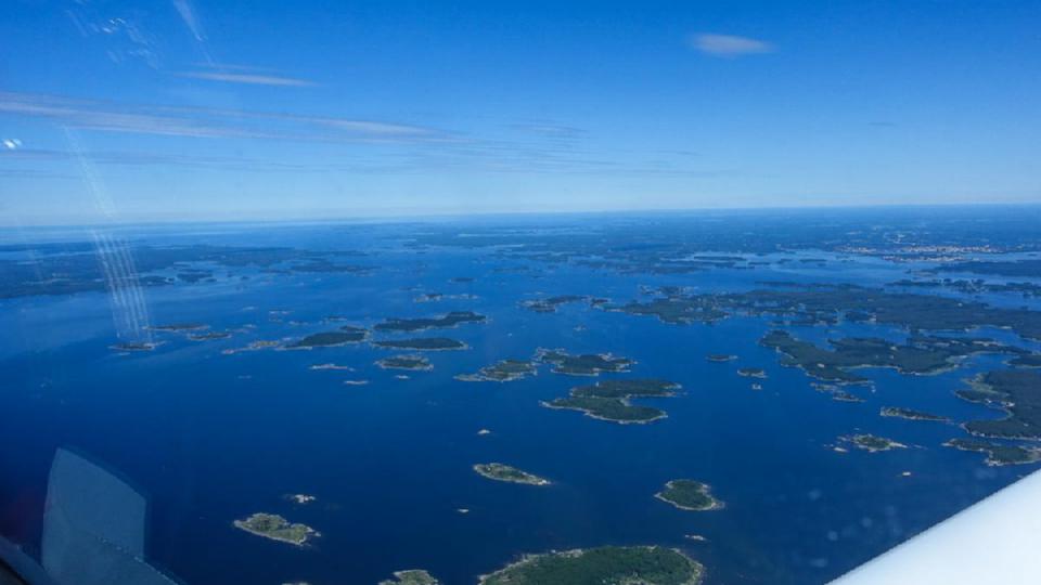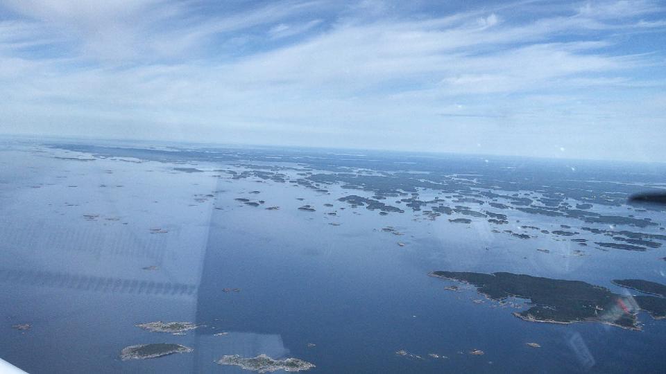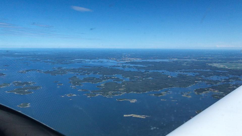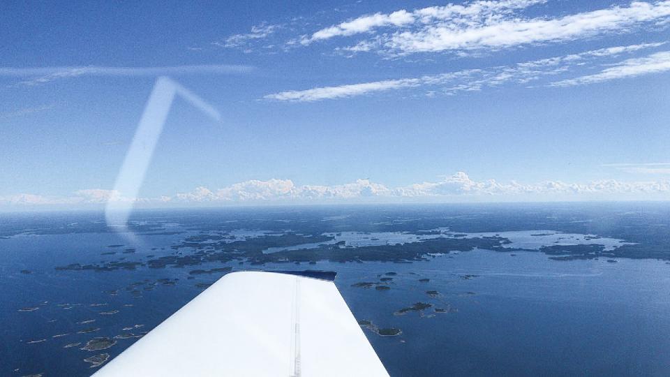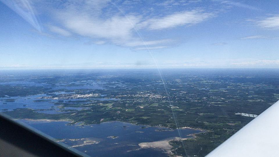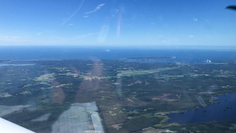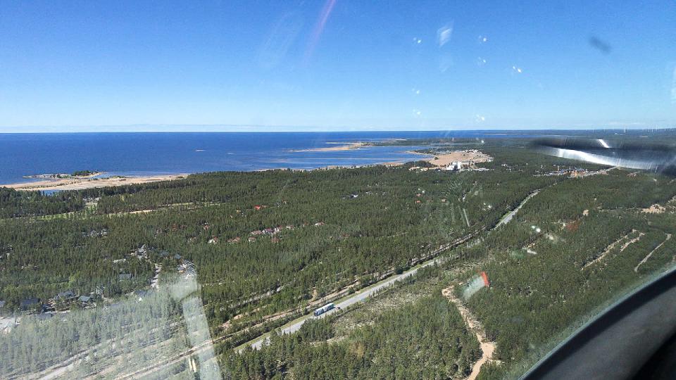 Morgens erstmals Schwimmwesten, Start von Kuressaares fester Piste, der Kurs mit fast 360 Grad ist nun die endgültige Ansage für Nordkurs. Schnell ist die Insel Saaremaa verlassen, wir überfliegen die Insel Hiiumaa (Taginsel) und erreichen den finnischen Meerbusen an der Grenze zur Ostsee. Die Strecke über Wasser ist 70km lang, gerade mal 400km weiter östlich liegt St. Petersburg. Wir erreichen das zerklüftete finnische Südufer und genießen den Anblick zahlloser Inseln im kalten Ostseewasser. Minischauer überm Festland, kleine Verwirrung im Anflug auf die 09/27 von Jämijärvi welche sich hinter der südlich gelegenen halb befestigten 15/33 versteckt.