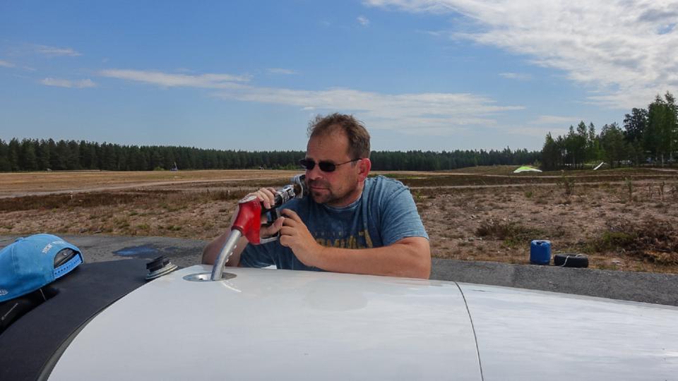 Jämijärvi war schon 2008 und 2013 Zwischenlandeplatz bei Nordkaptrips, wir tanken mit Geldkarte, schießen das obligatorische Spielzeugflugzeug-Foto und kriegen tatsächlich am Buffet was ab. Bei Charlie ist keiner da und so fliegen wir ab wie wir gekommen sind- ohne Bodenfunk.