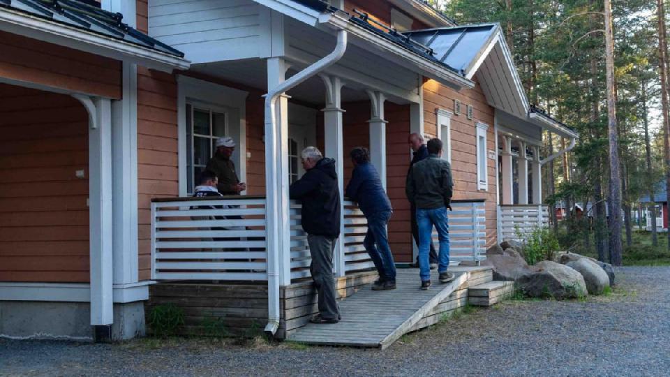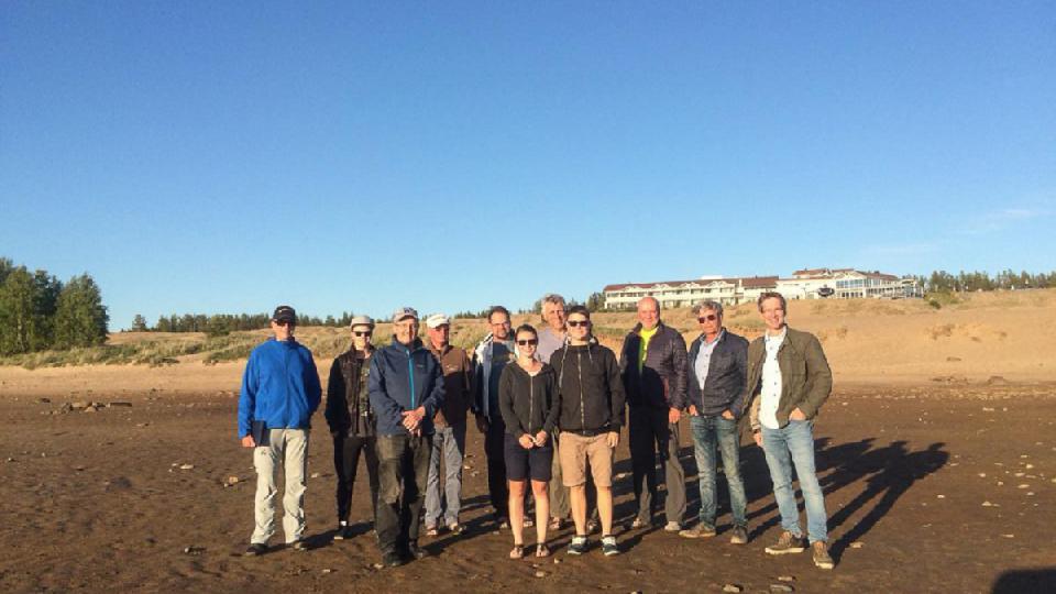 Keiner da, irgendwo finden wir eine Telefonnummer, später kommen Großvater und Sohn vorbei welche hier fliegerisch aktiv sind und sich rührend um uns kümmern. Wir holen 230l Sprit von der örtlichen Tanke im PKW, Rocket-Route hat uns Ferienwohnungen im Wald organisiert, es gibt Essen im Restaurant am Meer und da private Flugzeuge ja noch nicht wirklich dekadent sind, landet irgend ein Finne direkt auf der Düne mit einem privaten Hubschrauber um zumindest für Minuten Held des Tages zu sein. Die spinnen, die Finnen! Fotoshooting statt Baden am Strand, der Abend endet mit längerer Wanderung vom Restaurant durch den Wald und Ernst köpft die erste Flasche von Schnucks Rhabarberschnaps bei ungezählten Luftangriffen örtlicher Mosquitos während die Sonne nicht untergehen will.